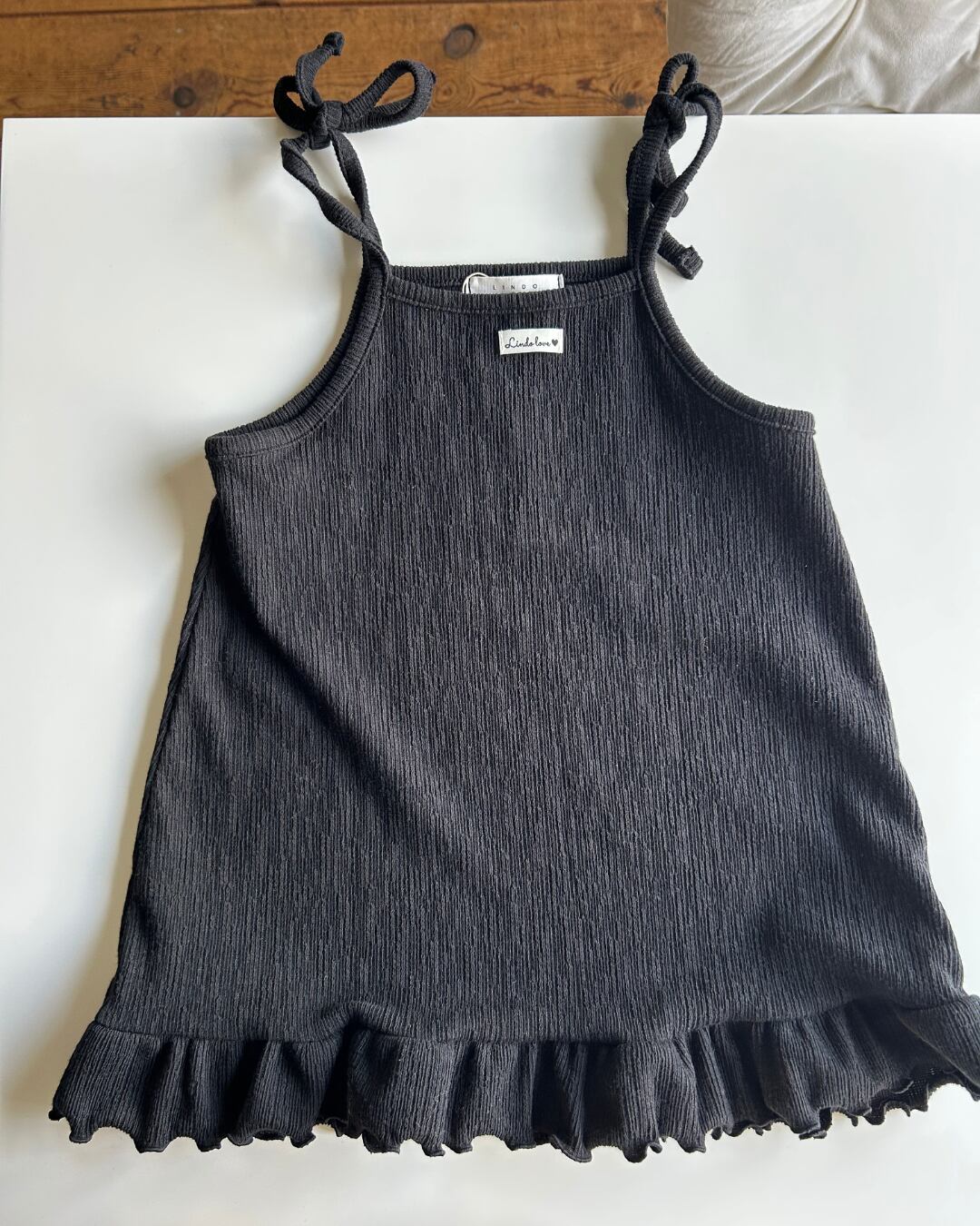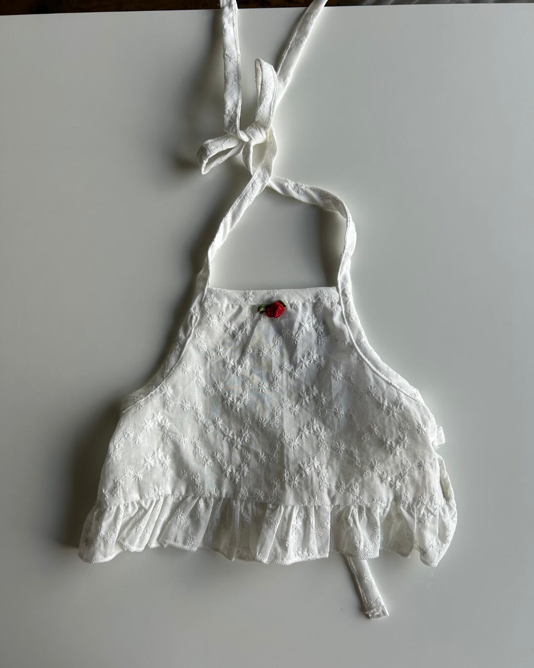 アイレット生地にフリルのデザインがついたトップス、