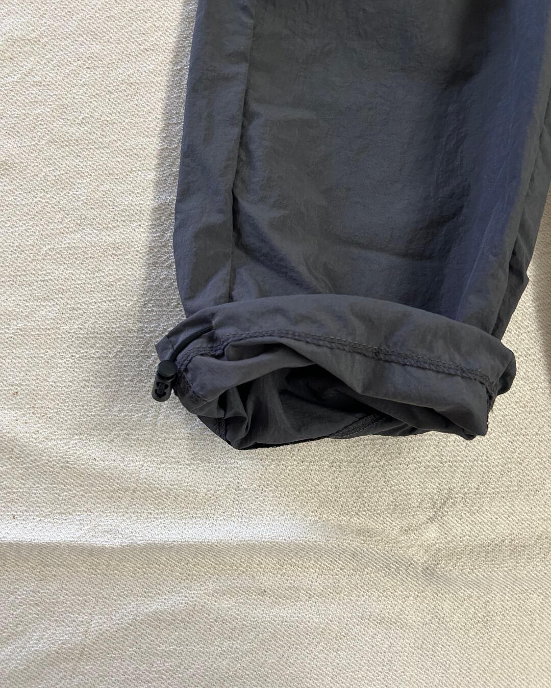 シャカシャカ素材の軽アウターとパンツに、柄Tシャツ