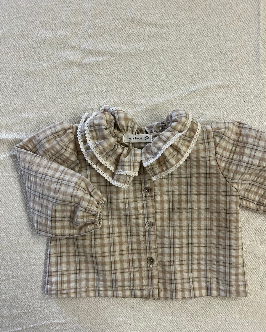 フリルにチェックが可愛いブラウス。